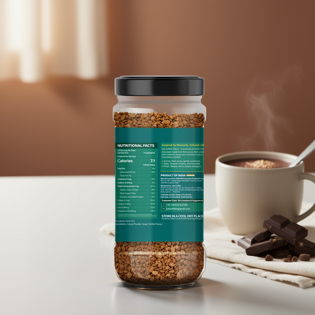 Luxuriously smooth drinking chocolate made from fine cocoa. Rich, velvety, and crafted to wrap your moments in pure, chocolatey comfort.